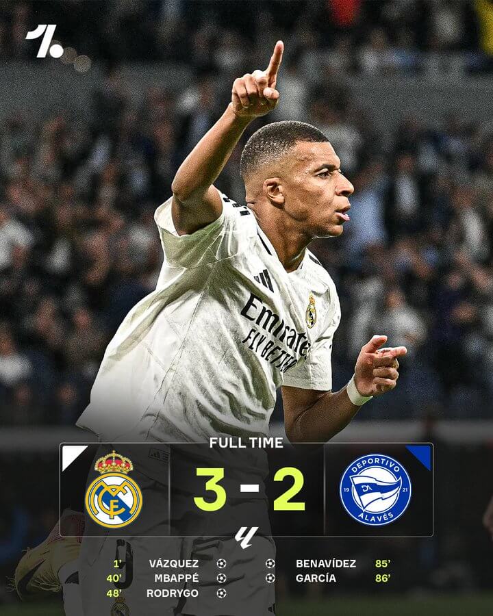 그러나 알라베스는 경기 막판에 카를로스 베나비데즈와 키케 가르시아의 연속 득점으로 스코어를 3-2로 따라붙으며 레알 마드리드를 압박했습니다.
