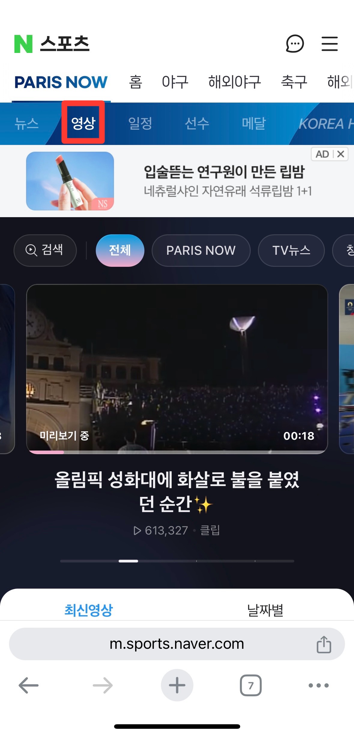 - PARIS NOW 페이지 접속 : 네이버 스포츠 메인 화면에서 "PARIS NOW" 아이콘을 클릭하여 2024 파리올림픽 전용 페이지로 이동합니다.