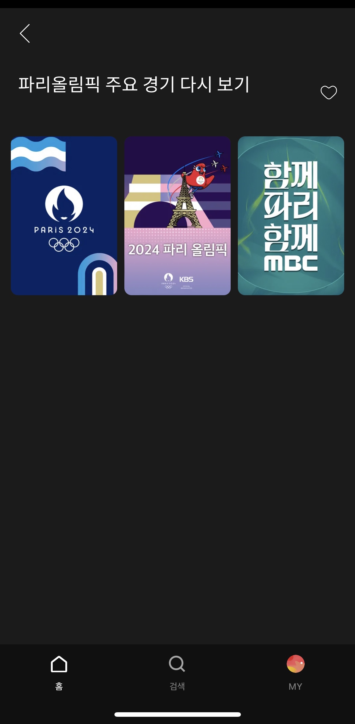 - 주요 장면 선택 : 파리 주요 영상, 종목별 영상, 방송사별 영상 중에서 원하는 하이라이트를 시청할 수 있습니다.