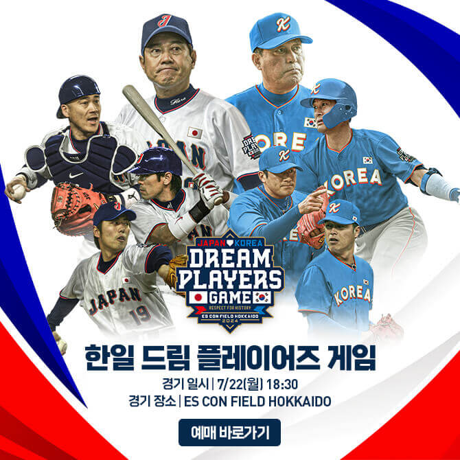 한국과 일본 야구 레전드 선수들과 함께하는 2024 '한일 드림 플레이어즈 게임'은 오는 7월 22일 오후 6시 30분 일본 에스콘 필드 경기장에서 열립니다. 일본 프로야구 탄생 90주년을 맞이해서 양 팀의 프로야구 역사를 이어 온 선수, 팬들에게 감사 인사를 담아 한일 야구팬들에게 소중한 추억을 제공하고자 특별한 한일전 경기가 열립니다.