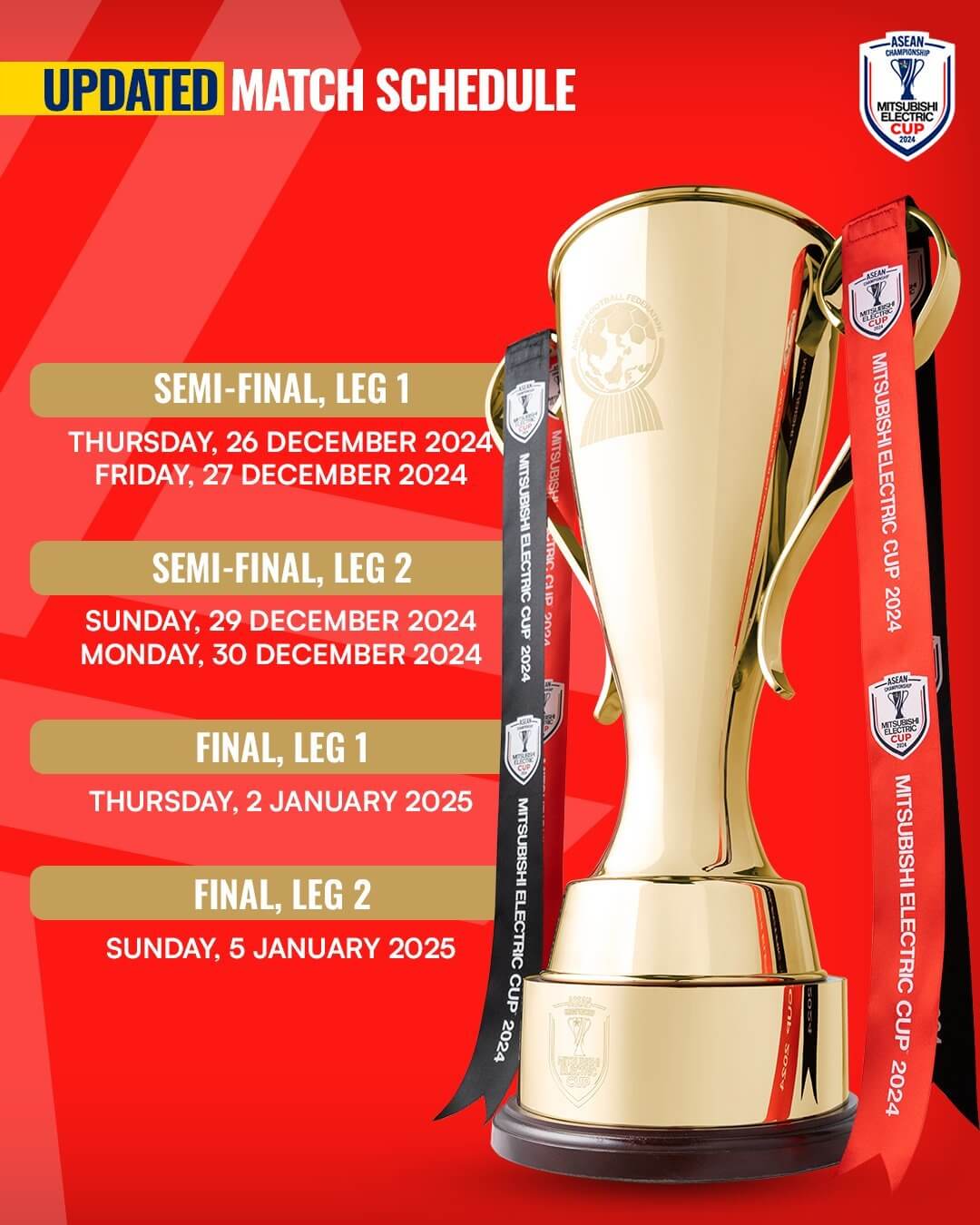 2024년 대회는 12월 8일에 개막하여 2025년 1월 5일까지 진행될 예정입니다. 조별 리그는 12월 8일부터 12월 30일까지 진행되며, 각 조의 상위 두 팀이 준결승에 진출합니다. 조별 리그를 통과한 4개 팀은 준결승에 진출하며, 준결승과 결승은 홈 앤 어웨이 방식으로 진행됩니다.