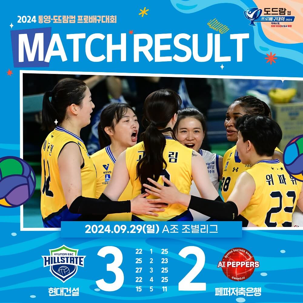 2024 통영 도드람컵 여자부 경기 일정 현대건설 페퍼저축은행 하이라이트